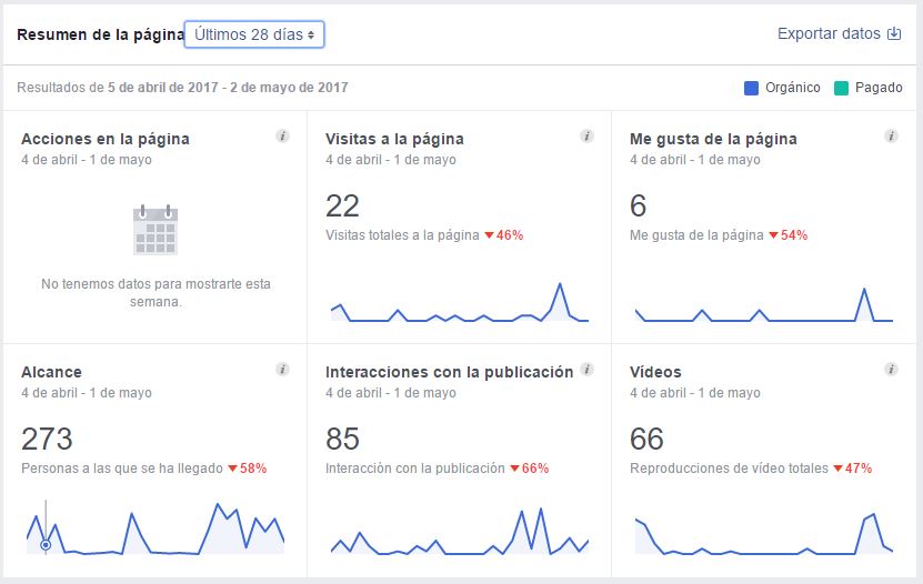 En los últimos 28 días se desprende que ha habido resultados negativos en todos los ámbitos de análisis (me gusta, visitas, alcance e interacciones).
